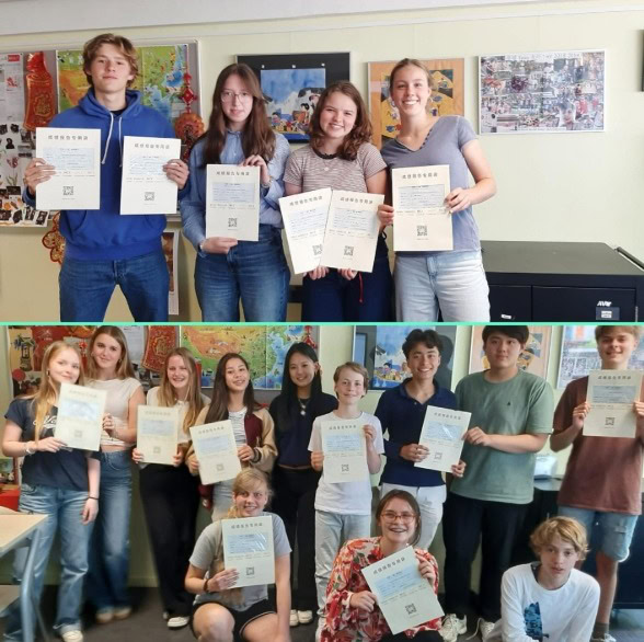 Leerlingen Chinees uit de 3e en 5e klas haalden hun HSK 1 en 2 examen. Dit is een internationaal erkende lees- en luistertoets Chinees. Felicitaties !