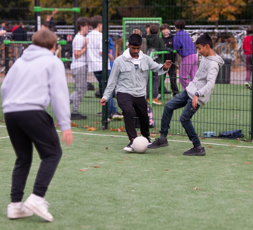 Bij ons op school geldt: telefoons thuis of in de kluis! Alle leerlingen, met uitzondering van de eindexamenjaren hebben een kluisje waar de telefoon in kan. De telefoon blijft daar tot het einde van de schooldag weer naar huis gaat. Ga lekker naar buiten, speel een potje voetbal, en vooral: maak het gezellig met je medeleerlingen!